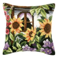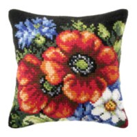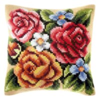 1flowers 04 DIY Needlework Kit Acrylic Yarn Embroidery Pillow Tapestry Canvas Cushion Front Cross Stitch Pillowcase-