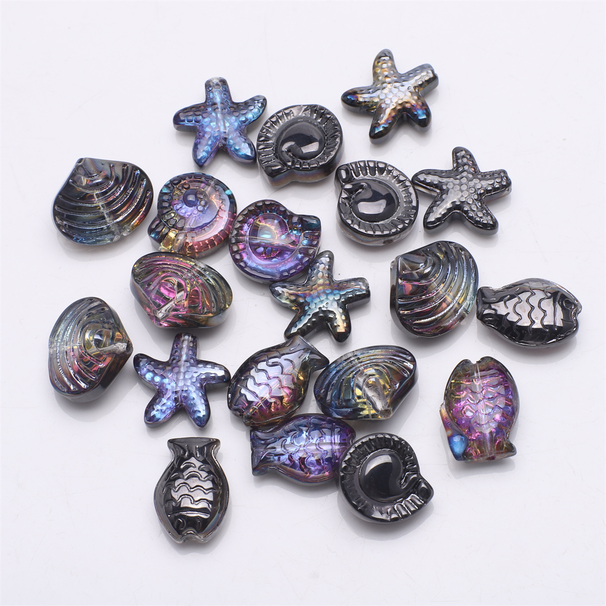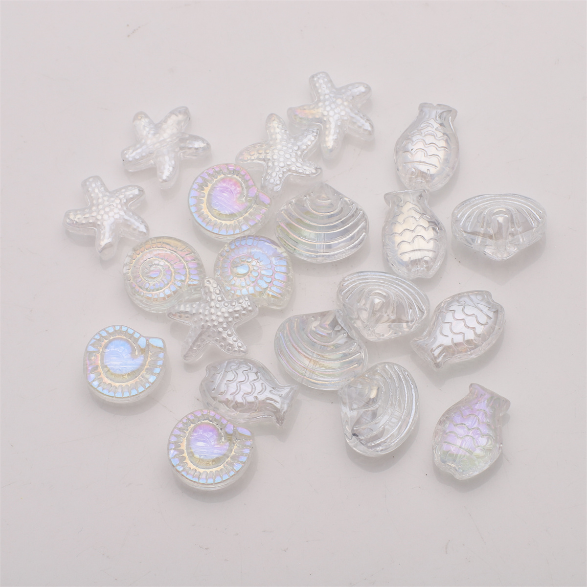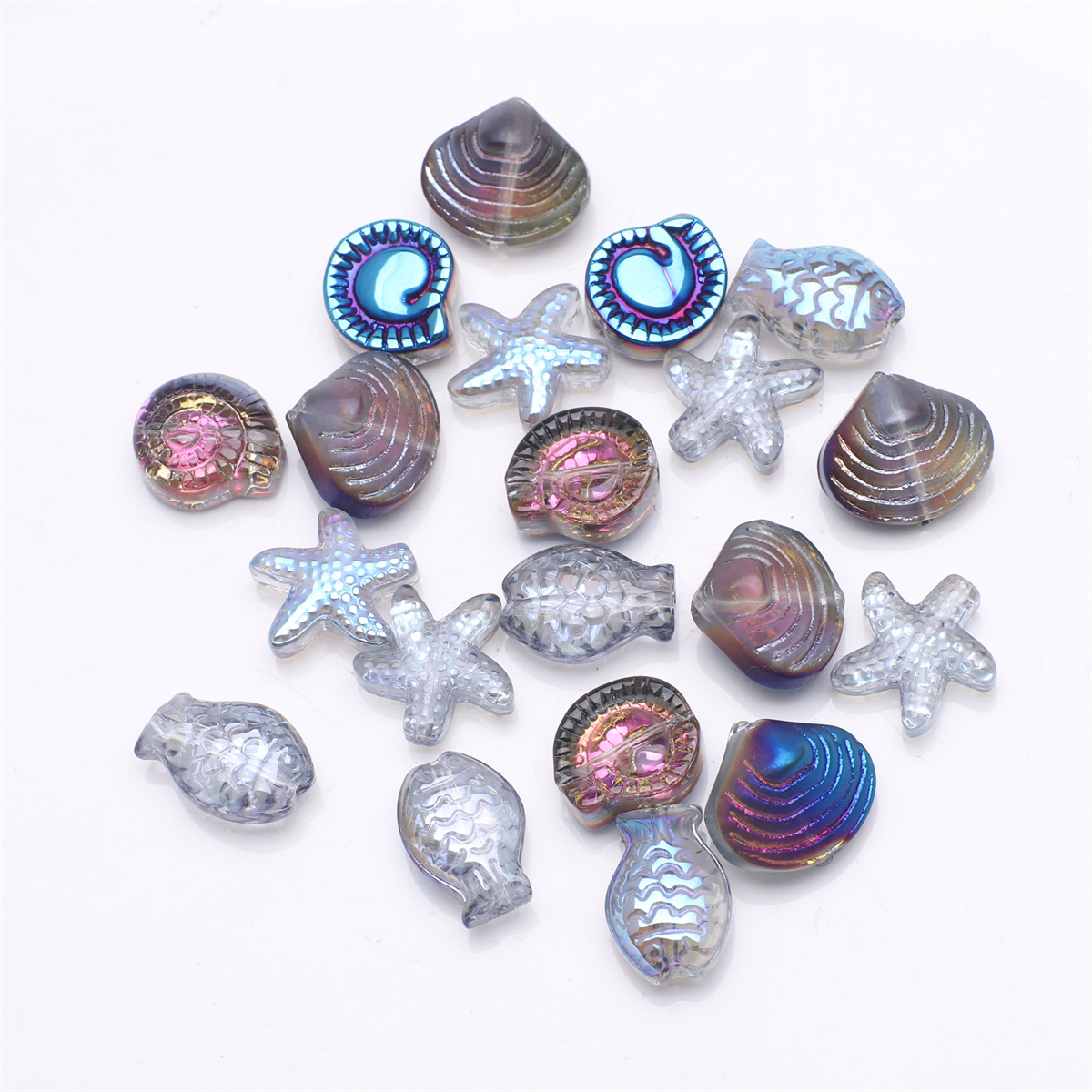 20 Pcs Mixed Shape Starfish /Snail /Shell/ Small Fish Crystal Glass Loose Beads DIY Making Earing Necklace Jewelry Accessories