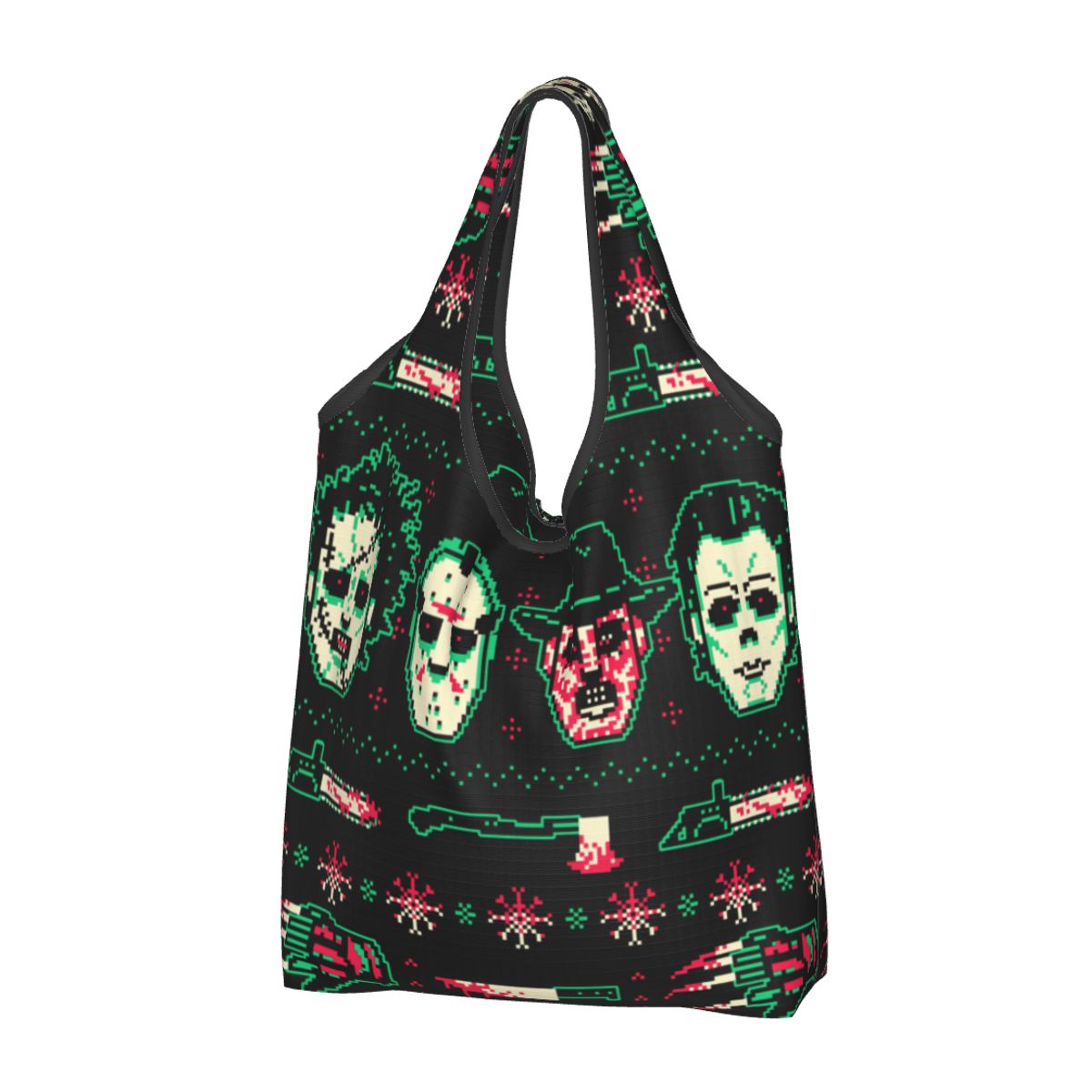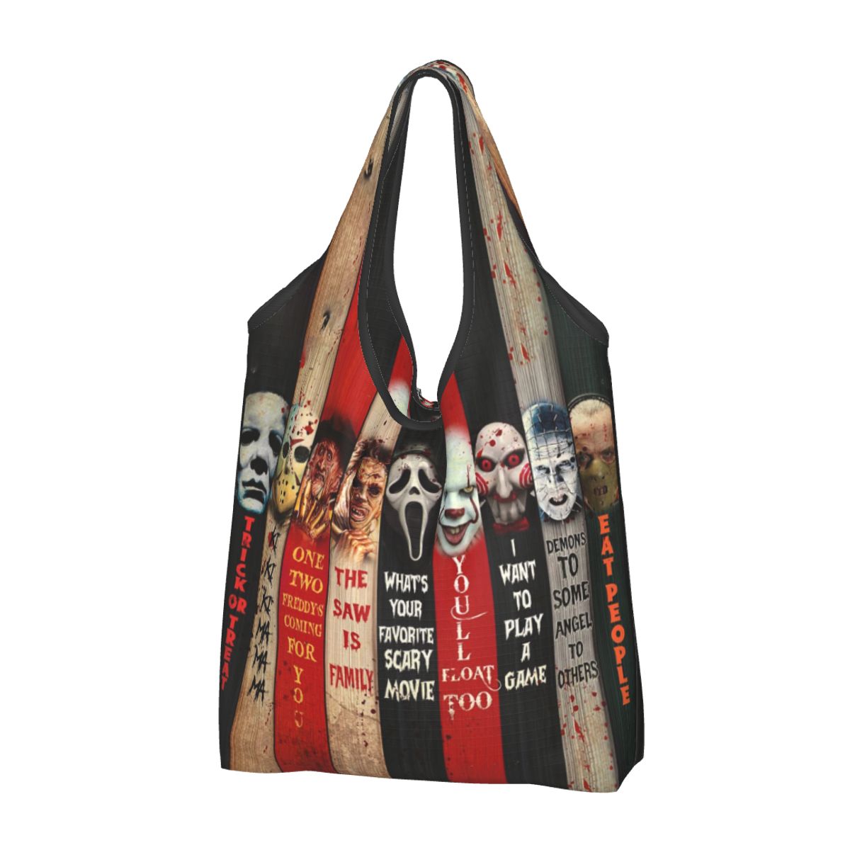 Custom Reusable Halloween Horror Movie Character Shopping Bag Women Tote Bag Portable Groceries Shopper Bags