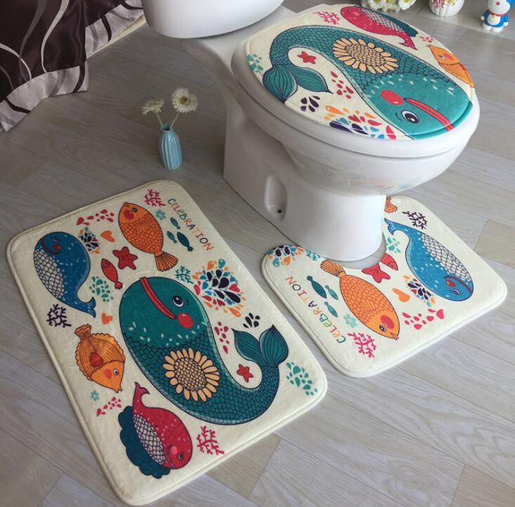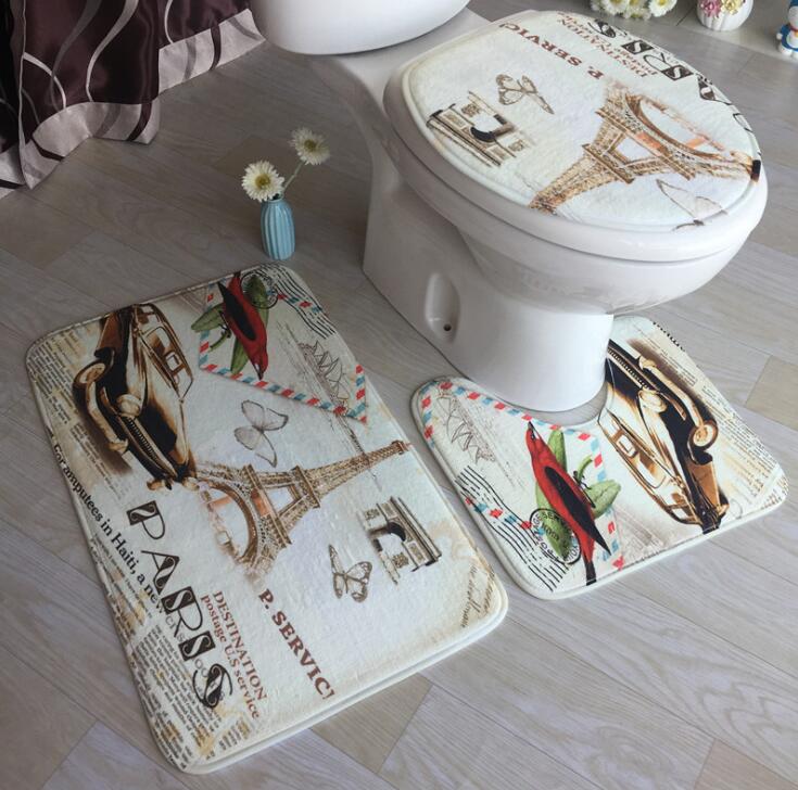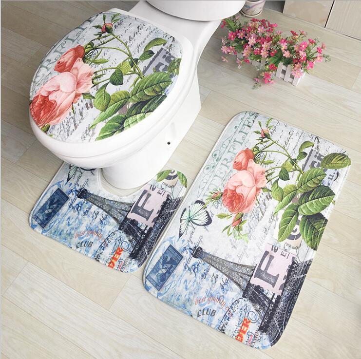 Flannel 3D Print Non Slip 3Pcs/Set Toilet Seat Cover WC Lid Toilet Cover Bathroom Pad Floor Mat Rug Carpet Vloerkleed ZCL512