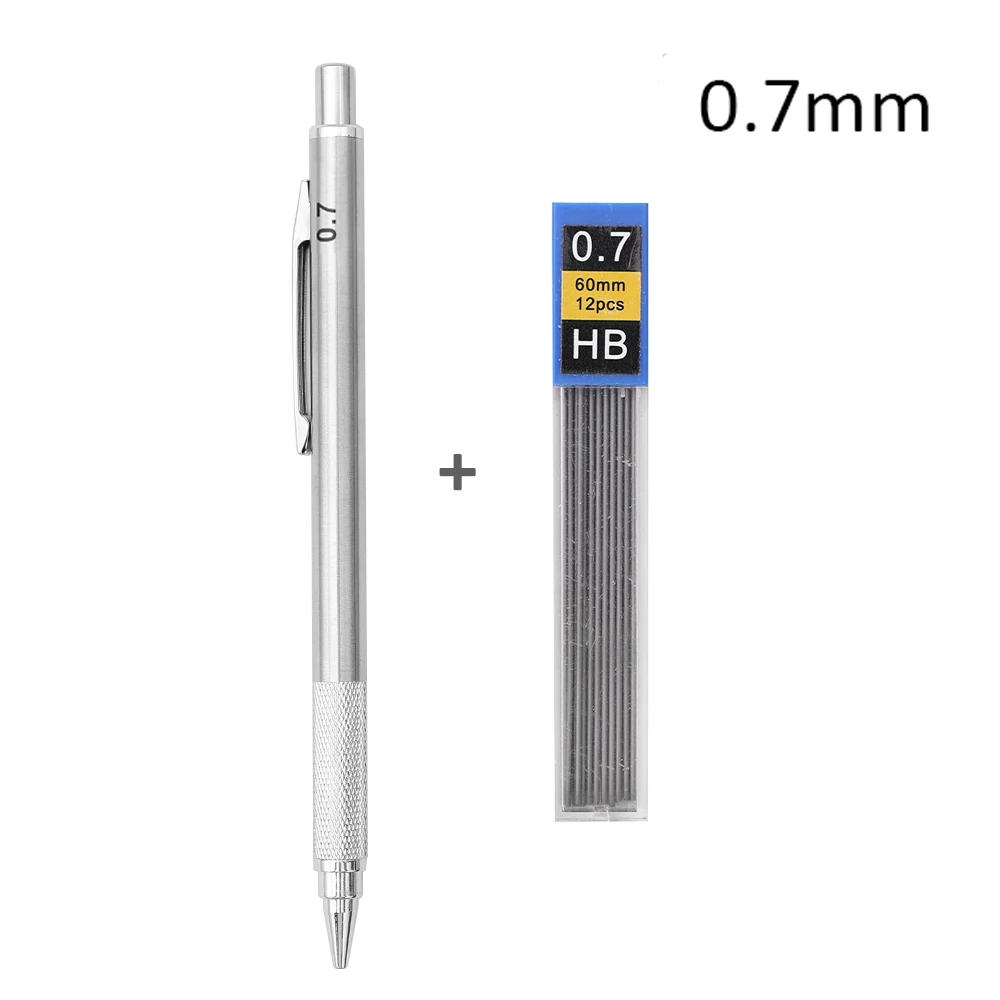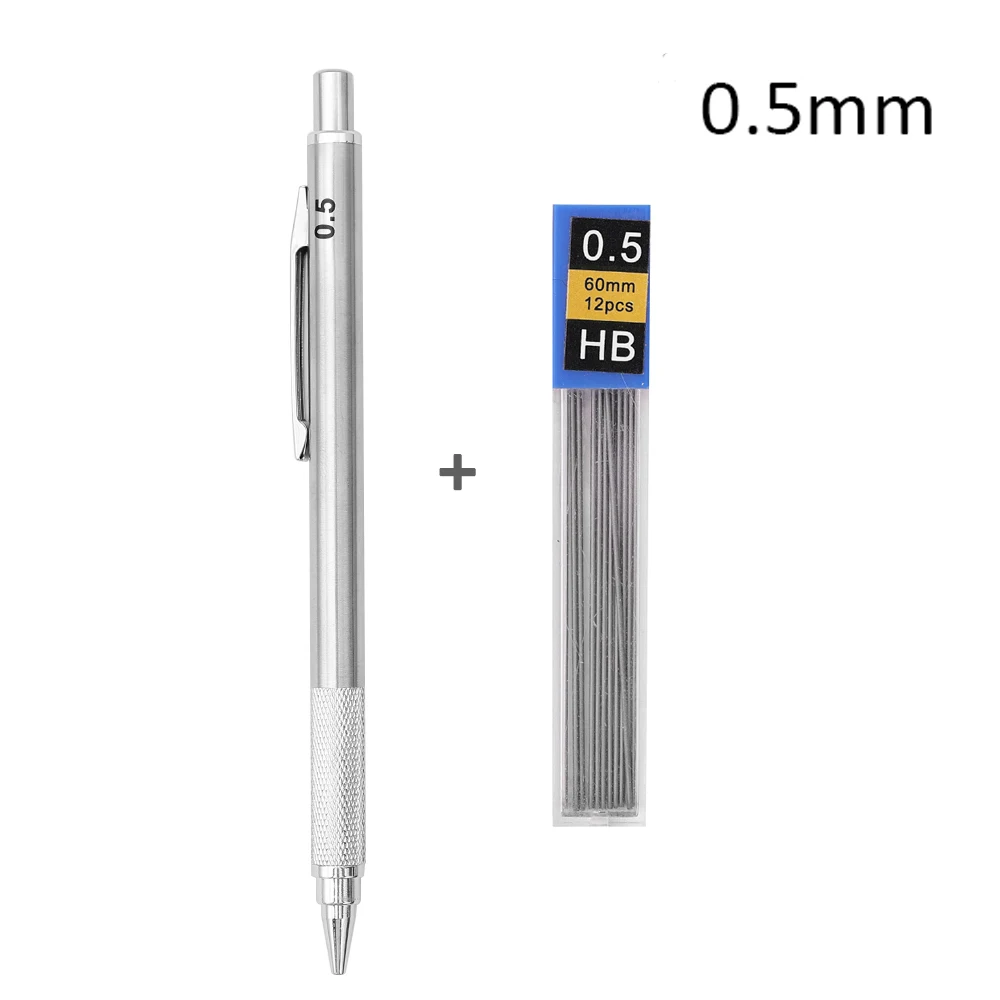 Metal Mechanical Pencil 0.3/0.5/0.7/0.9/1.3/2.0mm HB Leads Replaceable Refills Art Writing Drafting Drawing Home School Supplies