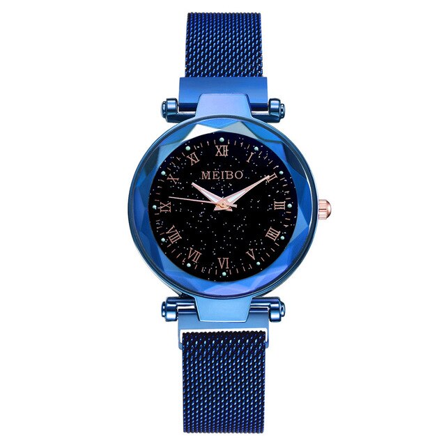 Relogio Feminino Women Starry Sky Watches Magnetic Mesh Belt Watch Women Dress Luminous Quartz Wristwatch Zegarek Damski: B Blue