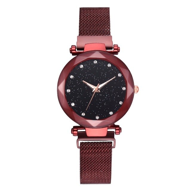Relogio Feminino Women Starry Sky Watches Magnetic Mesh Belt Watch Women Dress Luminous Quartz Wristwatch Zegarek Damski: C Red