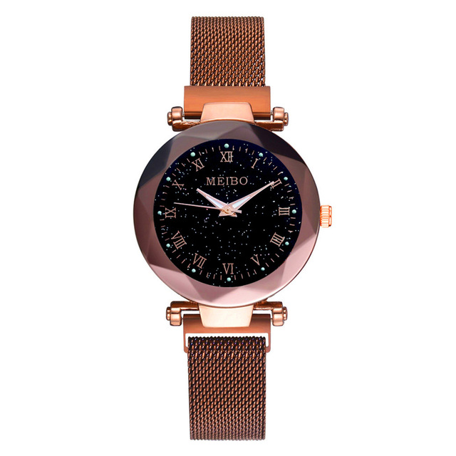 Relogio Feminino Women Starry Sky Watches Magnetic Mesh Belt Watch Women Dress Luminous Quartz Wristwatch Zegarek Damski: D Rose Gold