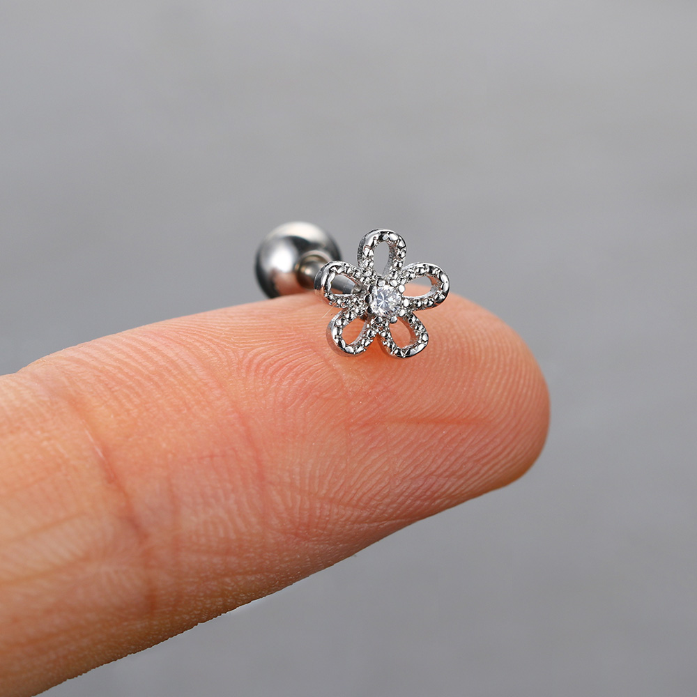 Sexy Flower Zircon Ear Piercing Stud Earring Helix Tragus Piercing for Girl Women Stainless Steel Snug Lobe Cartilage Jewelry