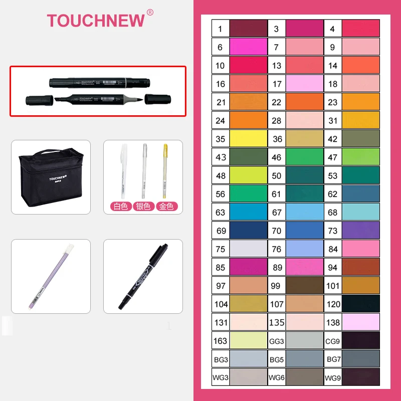 TOUCHNEW Marker 12/30/60/80/168 Colors Soft Brush Markers Pen Sketch Drawing Markers Set For Adults Comic Animation Art Supplies